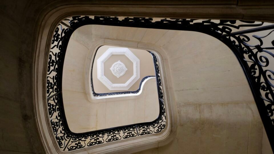 A sa suite, se déploie un escalier très élégant, doté d’une remarquable grille de ferronnerie de la même période, qui a remplacé un ancien escalier à vis. Ce changement témoigne de l’évolution des goûts et des usages au fil des siècles.