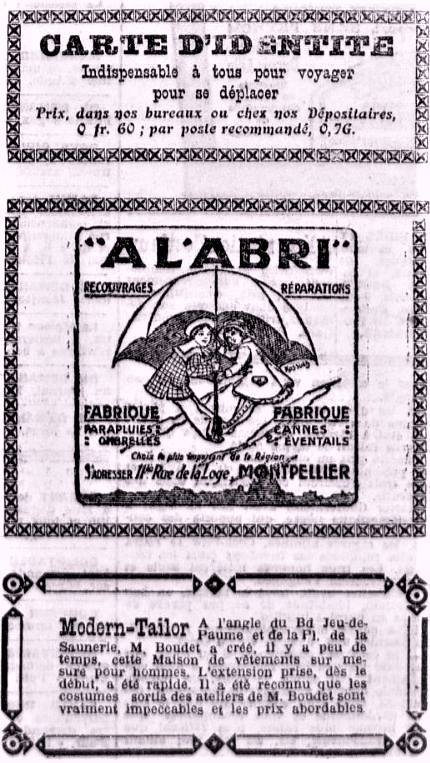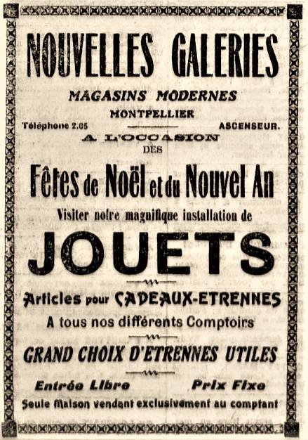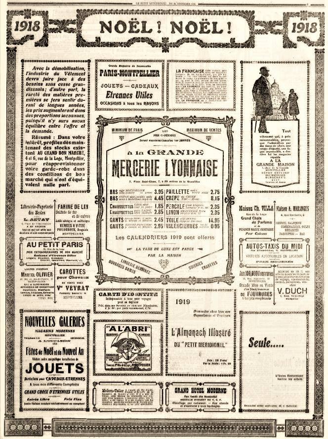 Les commerces de Montpellier recommandés en 1918 pour les fêtes de fin d’année par Journal “Le Petit Méridional”